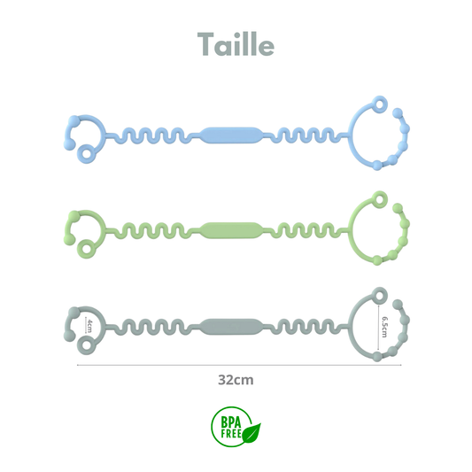 Lot de 3 sangles en silicone attaches universelles pour jouets biberons et gobelets de bébé